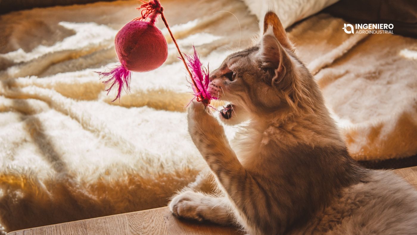 Los juguetes interactivos para gatos, como cañas, pelotas y circuitos, favorecen el ejercicio físico y mental.